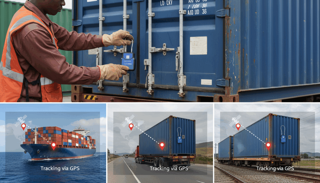 Tracks cargo location via GPS